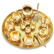 Nobility Pooja Thali Set in Pure Brass consists of an intricately designed Pooja plate, as well as, an assortment of items necessary for performing various religious rites during auspicious occasions.