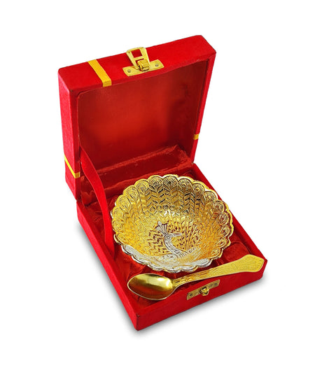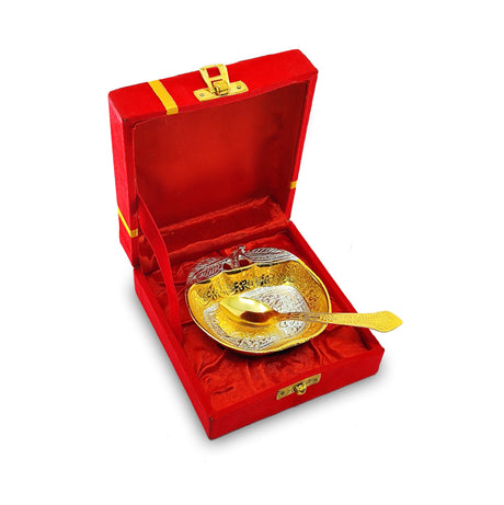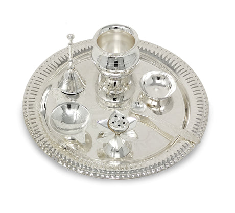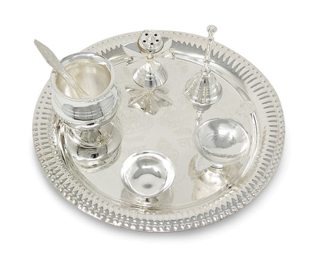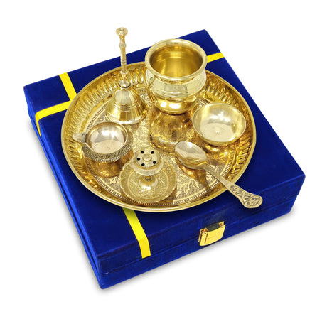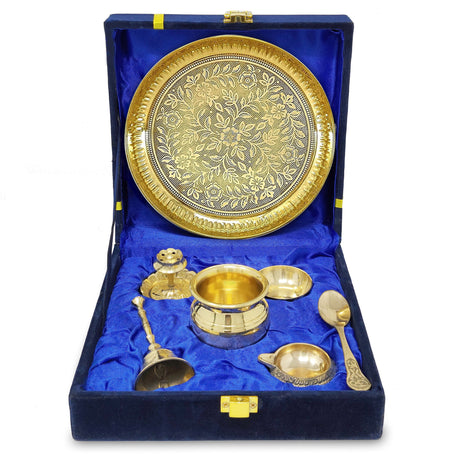 NOBILITY Pure Brass Pooja Thali Set 6 Inch with Blue Velvet Gift Box