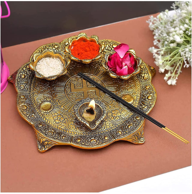 NOBILITY Pooja thali Set for Festival Ethnic Metal Puja Thali Gift for Diwali Home Temple Office Wedding Return Diwali Gift Items