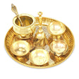 - π Nobility Pooja Thali Set in Pure Brass consists of an intricately designed Pooja plate, as well as, an assortment of items necessary for performing various religious rites during auspicious occasions