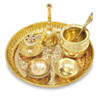 - Bengalen Pooja Thali Set in Pure Brass consists of an intricately designed Pooja plate, as well as, an assortment of their items necessary for performing various religious rites during auspicious occasions
