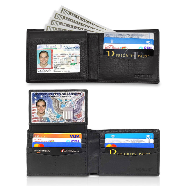 NOBILITY Wallet Black for Men Genuine Leather RFID Blocking Bifold Stylish Wallet With 2 ID Window Gift Items